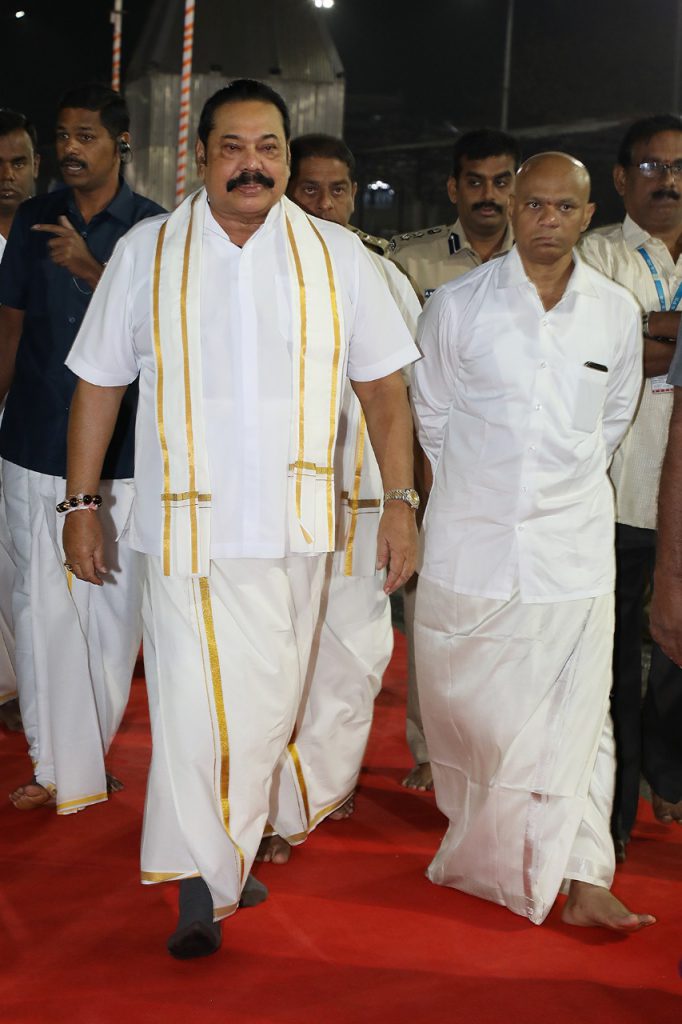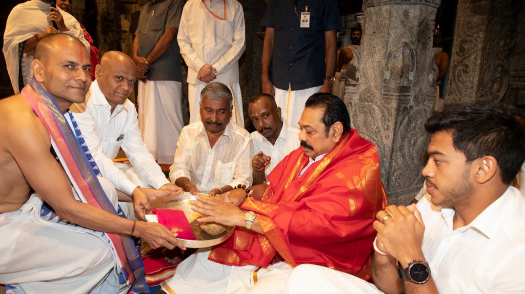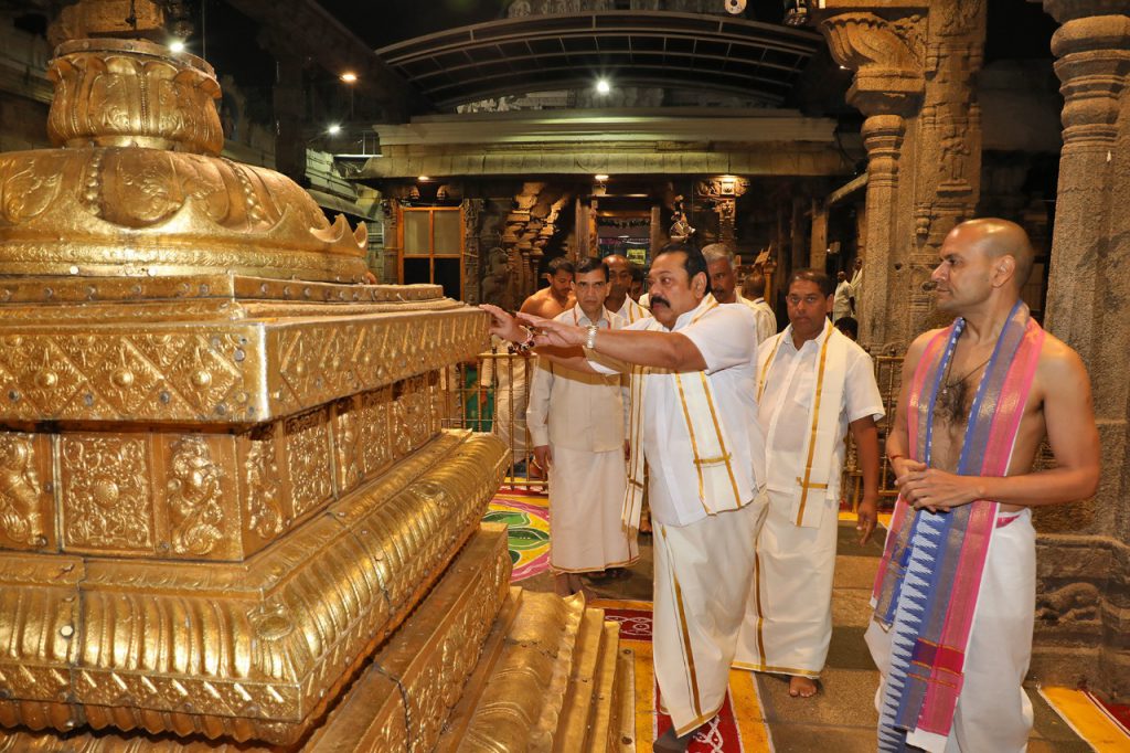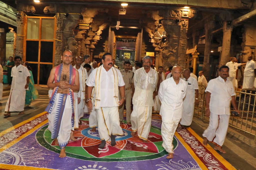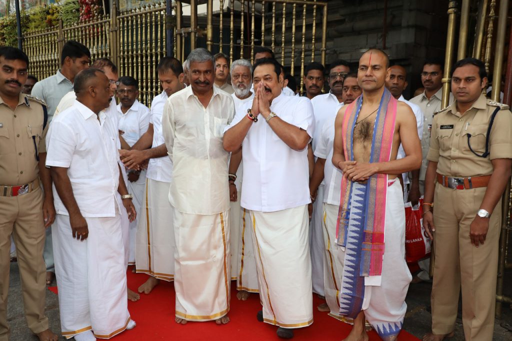 The Honourable Prime Minister of Sri Lanka, Sri Mahinda Rajapaksa, accompanied by his cabinet minister Sri Arumugan Thondaman and his son Sri Yoshita Rajapaksa offered prayers in the hill shrine of Lord Venkateswara on Tuesday morning.