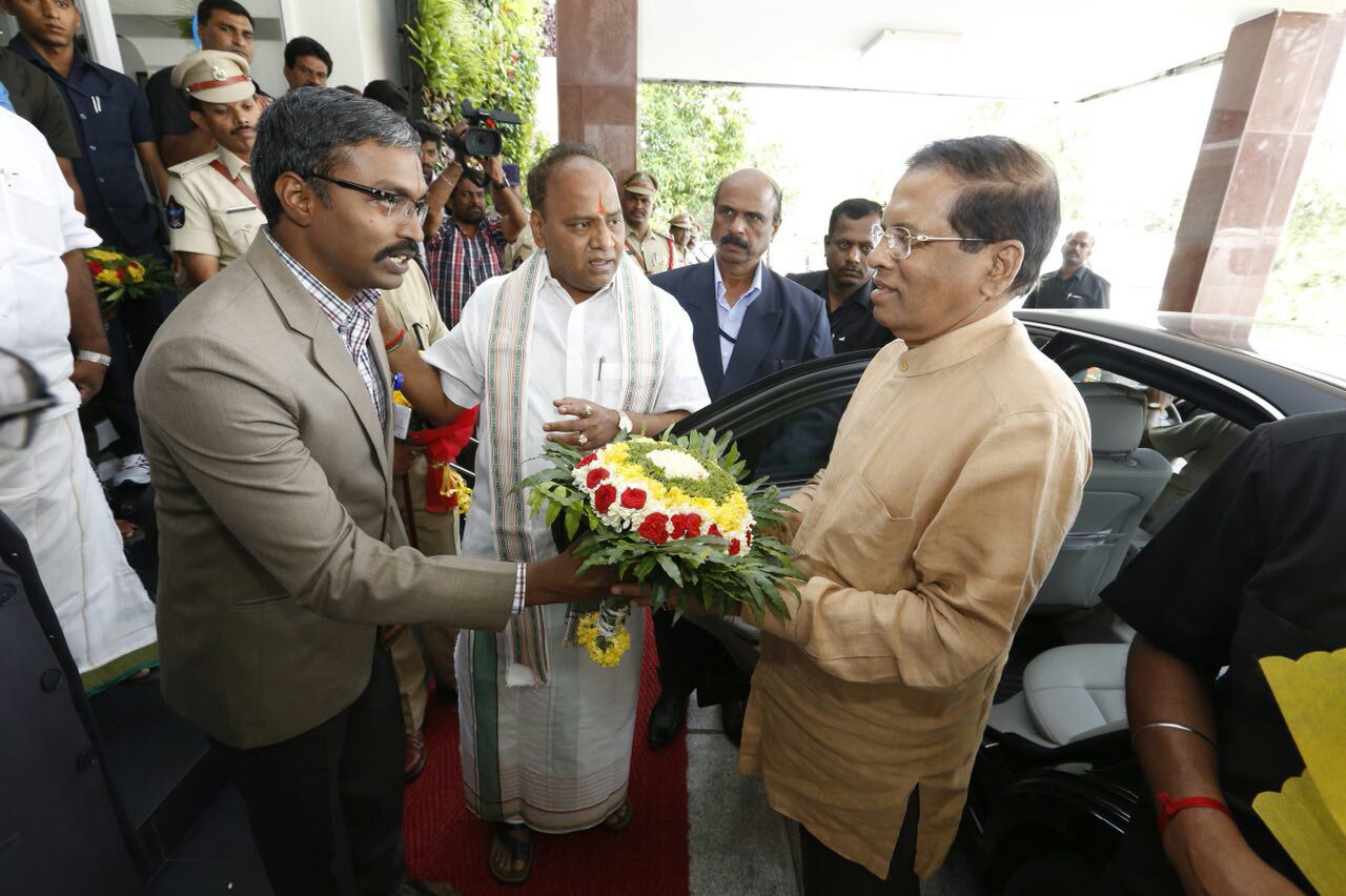 Sri Lankan President Maithripala Sirisena on Friday arrived in Tirumala – the sacred abode of Lord Venkateswara. Accompanied by his wife Jayanthi Pushpa Kumari and other Sri Lankan officials, Sirisena reached Tirupati from Bengaluru by road. On his arrival at the temple, the president was given a ceremonial traditional reception by the priests and temple management. After an overnight stay, he and his family were expected to participate in ‘Suprabhatha” recitation ritual inside the temple early tomorrow. This is his third visit to the Tirumala hills as Sri Lankan president. He previously visited in February 2015 and last year in August.