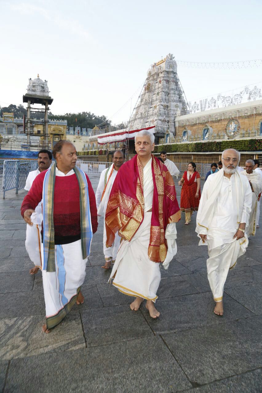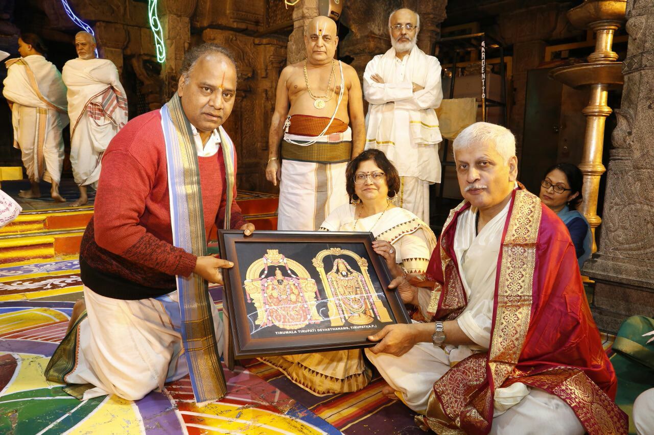 Hon’ble Justice Uday Umesh Lalit, Supreme Court of India has visited Tirumala hill to seek blessings of Lord Venkateswara. Accompanied by his wife, Mr Lalit took part in Archana Seva of the presiding deity today. After the darshan, the priests showered ‘Vedasirvachanams’ on him and honoured him with silk vastram while the TTD JEO KS Srinivasa raju presented him with a memento and laddu prasadam.
