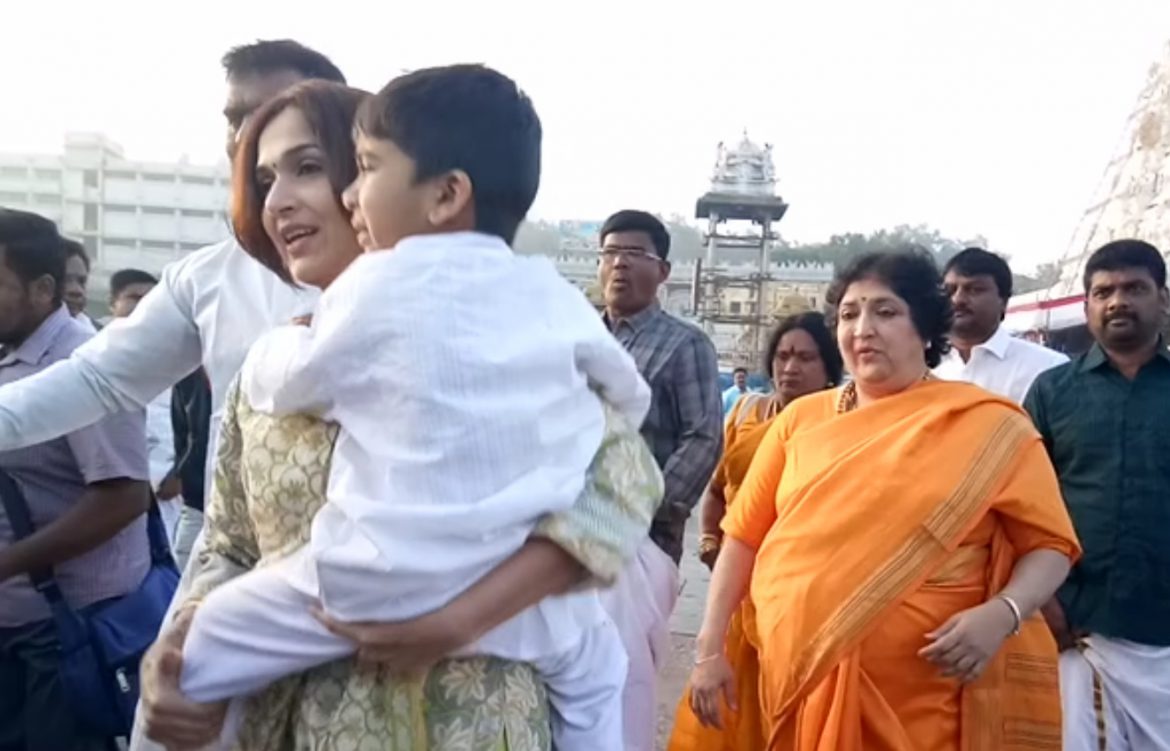 Rajinikanth’s wife and daughter Aishwarya prays at Tirumala