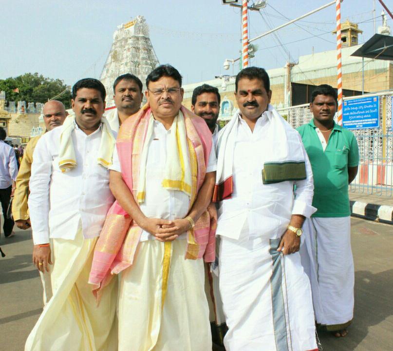 YSRCP spokesperson Ambati Rambabu prays at Tirumala