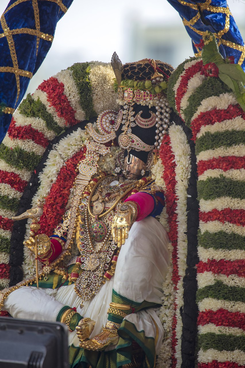 On the fifth day of Srivari Navaratri Brahmotsavam Lord Venkateswara enthralled his devotees by appearing in the form of celestial beauty Mohini (female costumes) along the four Mada streets atop an Ivory palanquin with a golden parrot (Nachiar Thirukkolam). The…