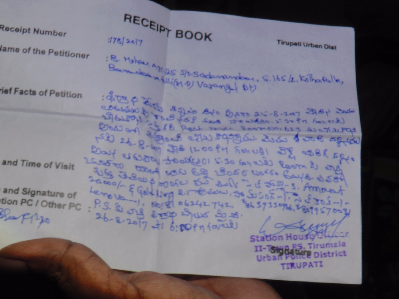 With in a week another theft in sapthagiri rest house room no 623, Tirumala. As per piligrims complaint 2.5gm gold ring, 17 thousand cash and 3 mobiles gone missing.