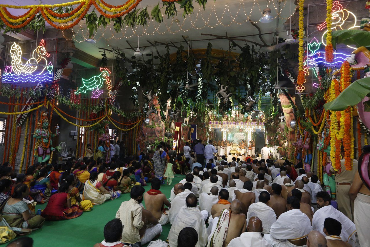 Before commencing the Rajopacharams, Vishwaksena Prardhana, Punyahavachanam, Navakalasabhiahekam were performed as per Vaikhanasa Agama.