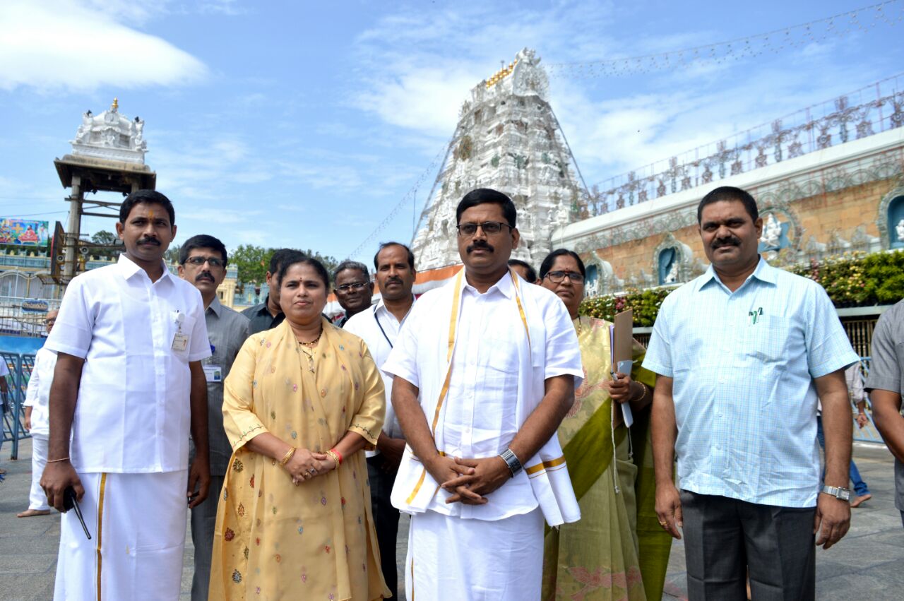 The temple administration of Tirumala Tirupati Devasthanams(TTD) appointed Rajasekhar Babu as new CV&SO. He had darshan of the lord Venkateswara today morning along with his family members. Addressing media persons in the temple premises, Rajasekhar Babu said AKE Ravi Krishna will take charge as new CV-SO on July 3rd. He thanked AP CM Chandrababu Naidu for giving chance of doing service to Lord as CV-SO for 3 days.
