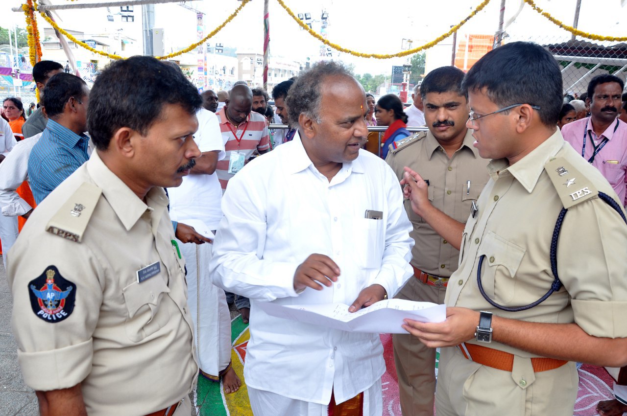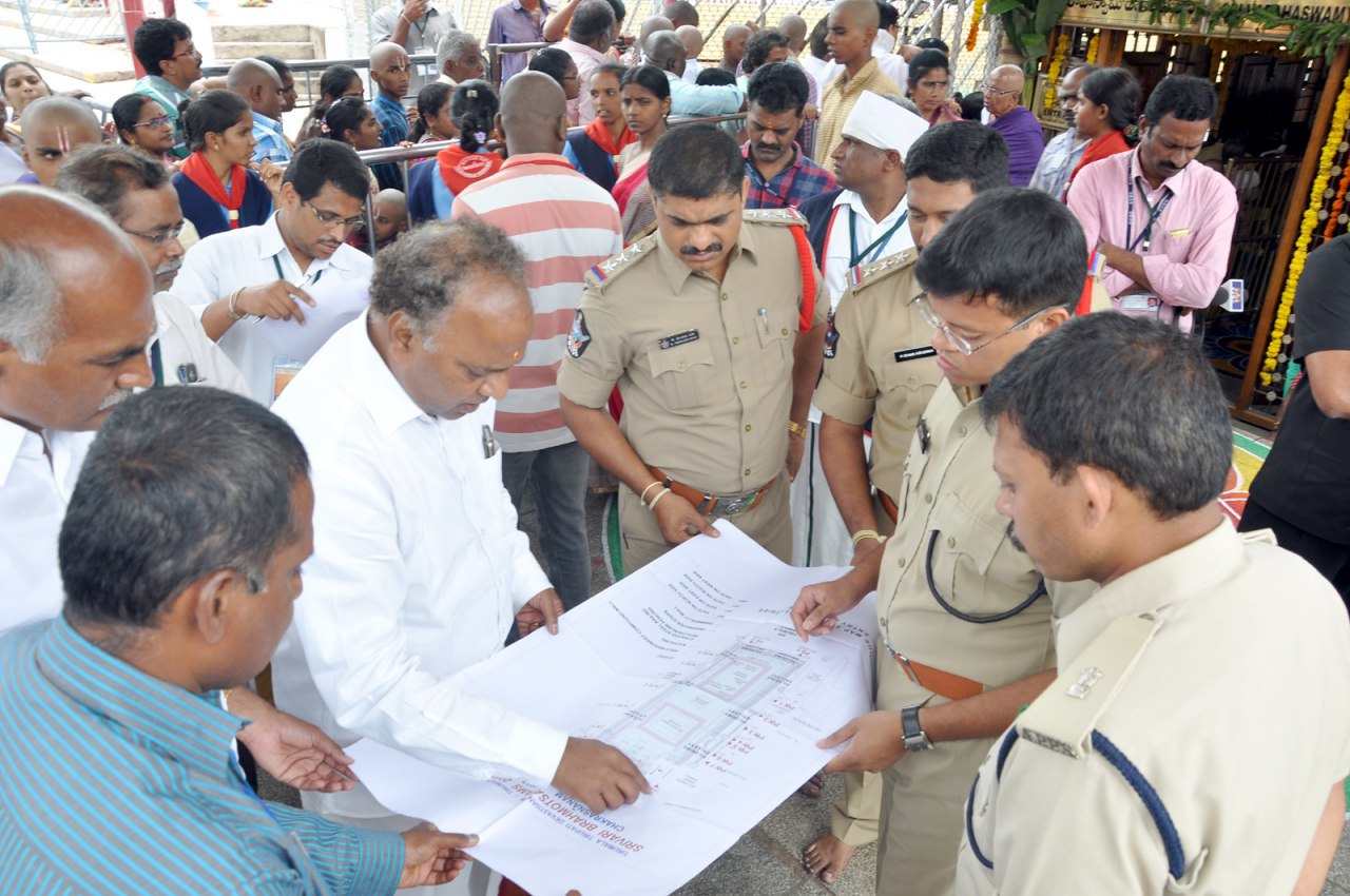 TTD EO Anilkumar Singhal on Friday inspected the ongoing arrangements in Swami Pushkarani for the upcoming Chakrasnanam scheduled to happen on October 1st. He instructed the engineering, vigilance and police wings to make necessary arrangements to see that pilgrim devotees are not put to any sort of inconvenience on the day.