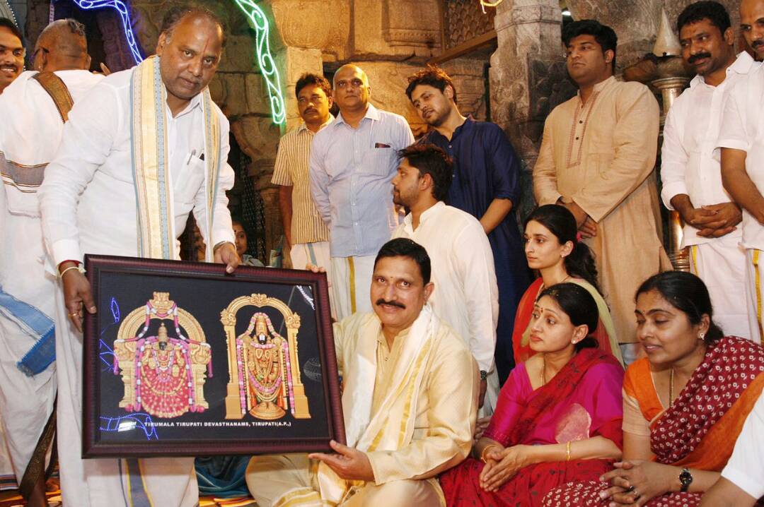 The Union Minister of State for Science & Technology, Earth Science Sri Y. Sujana Chowdary offered prayers in the temple of Lord Venkateswara on Monday morning. On his arrival at Sri Vari Temple, TTD Chairman Dr Ch Krishnamurthy, TTD EO Anil Kumar Singhal, the priests and officials welcomed the minister and led him to the sanctum sanctorum. Tirumala JEO Sri KS Sreenivasa Raju offered prasadams to Sujana Chowdary at Ranganayakula Mandapam.