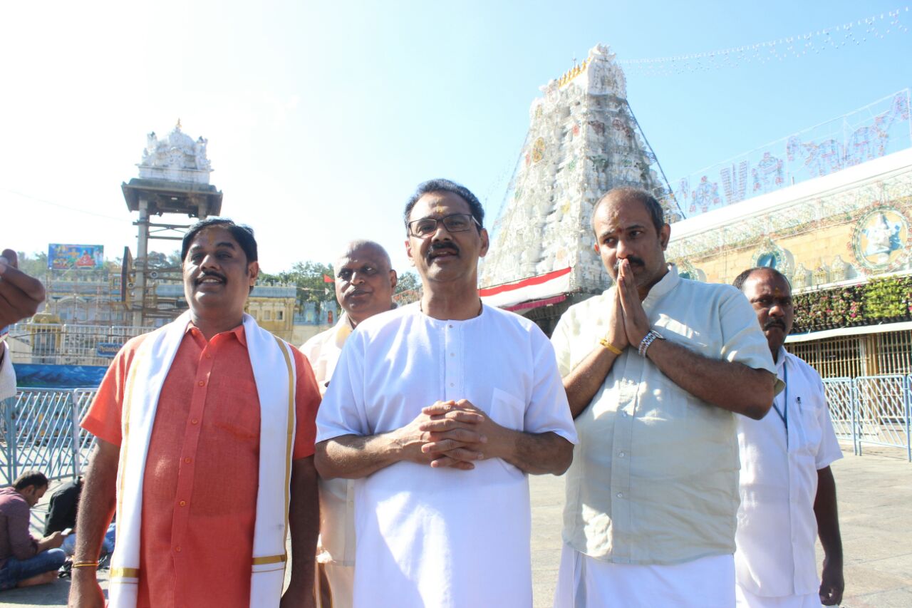 A host of VIPs visited the hill temple of Lord Venkateswara on Friday and had darshan of the deity during VIP break. Among those who visited the hill shrine include Malaysia education minister SK Devamani, Jammu Kashmir Lt General Upadhyaya, DIG Prabhakar Rao, Telangana MLC Deputy Chairman Neti Vidyasagar, Lokayukta George Subhash Bee Adhi. After darshan, temple priests offered Laddu Prasadam and holy water to the VIPs at Ranganayakula mandapam.