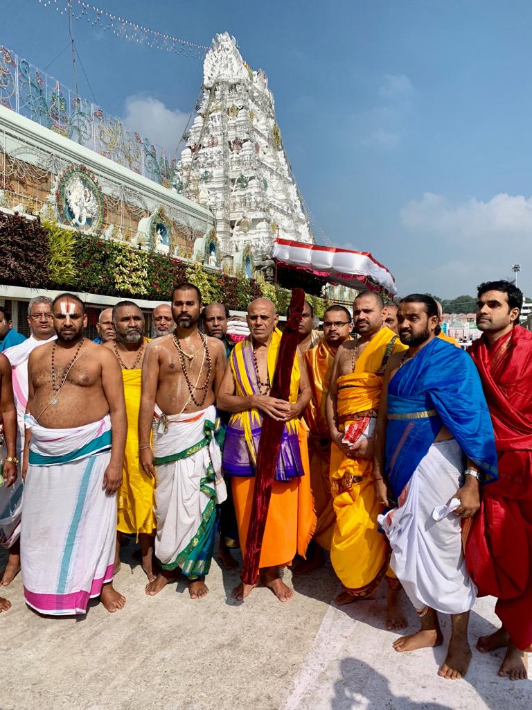 Vyasaraja Mutt Seer Sri Sri Sri Vidyasreesatheertha Maharishi offered his prayers to Lord Venkateswara today in Tirumala. The seer along with disciples arrived at Monday and he went for darshan during VIP break. After darshan temple officials presented Ladduprasadam and holy water to him at ranganayakula mandapam.