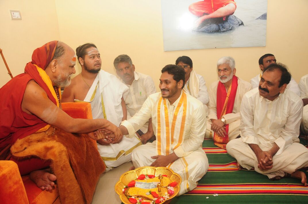 Speaking to mediapersons outside temple, Jagan said he prayed to Lord Venkateswara for the success of his padayatra ‘Praja Sankalpam’. Later, Jagan met Swaroopananda Swamy at Visakha Saradapeetam and took his blessings.